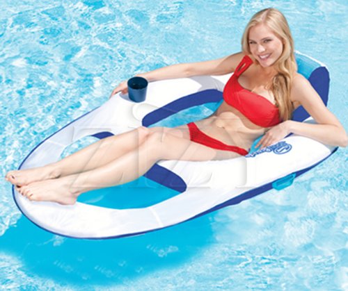 | 10 of 10 people found the following review helpful By = Durability: Amazon Verified Purchase I purchased 2 of these water recliners for our home in FLA. One yellow and one blue.We used them only 1 week. After 1 week , the one yellow float was fine, yet the other blue one, I believe had a manufacturing defect. The mesh bottom of the float began to fray by the end of the week after only 4 times in the water . The side seam sewing on this float also came apart. Yet the second float used in the same manner was fine. 7 of 7 people found the following review helpful By MuziKween "muzikween" (Sedalia, CO) - See all my reviews = Durability: I have continually purchased these floats season after season. We live in Houston, so our swim season is very long (from May until Sept. or Oct.) and I have found that for us they only last about one season before the mesh on the bottom splits in two. That's to be expected from being either in the pool or in the garage all year long. Up until this year, they have always been made out of a very thick sturdy vinyl material. When I purchased them this year, the outer covering feels like a plastic bag. They have obviously gone to a much cheaper material to make them than they did in the past. We'll see how they hold up this season. Also, they are easy to find at all the pool stores, sporting goods stores like Academy Sports & Outdoors if you live near one and Target for much cheaper than online. I paid $32.99 for mine just this month at Warehouse Pool Supply. Unless you live in a very small town or remote area, it would be cheaper to buy them at the store than order online. 5 of 5 people found the following review helpful By Amazon Verified Purchase We use these primarily when on our boat (in the water). They inflate and deflate quickly with a small electric float pump. They are perfect for floating around while reading your favorite book and there is a place to put your drink! When you get snoozy, you can just put your book in a ziplock along with a sheet of paper towel to dry your hands on, and scrunch down for a quick nap. The foot rest is well designed and supports quite well. They are just a slight bit more interesting to collapse than the full length "spring" floats but once you get the hang of it they store flat in very little space. Unlike fully inflatable floats that hold you competely out of the water, these allow you to get wet and stay cool while you are relaxing. They also provide a great barrier when the bluegill get hungry. |